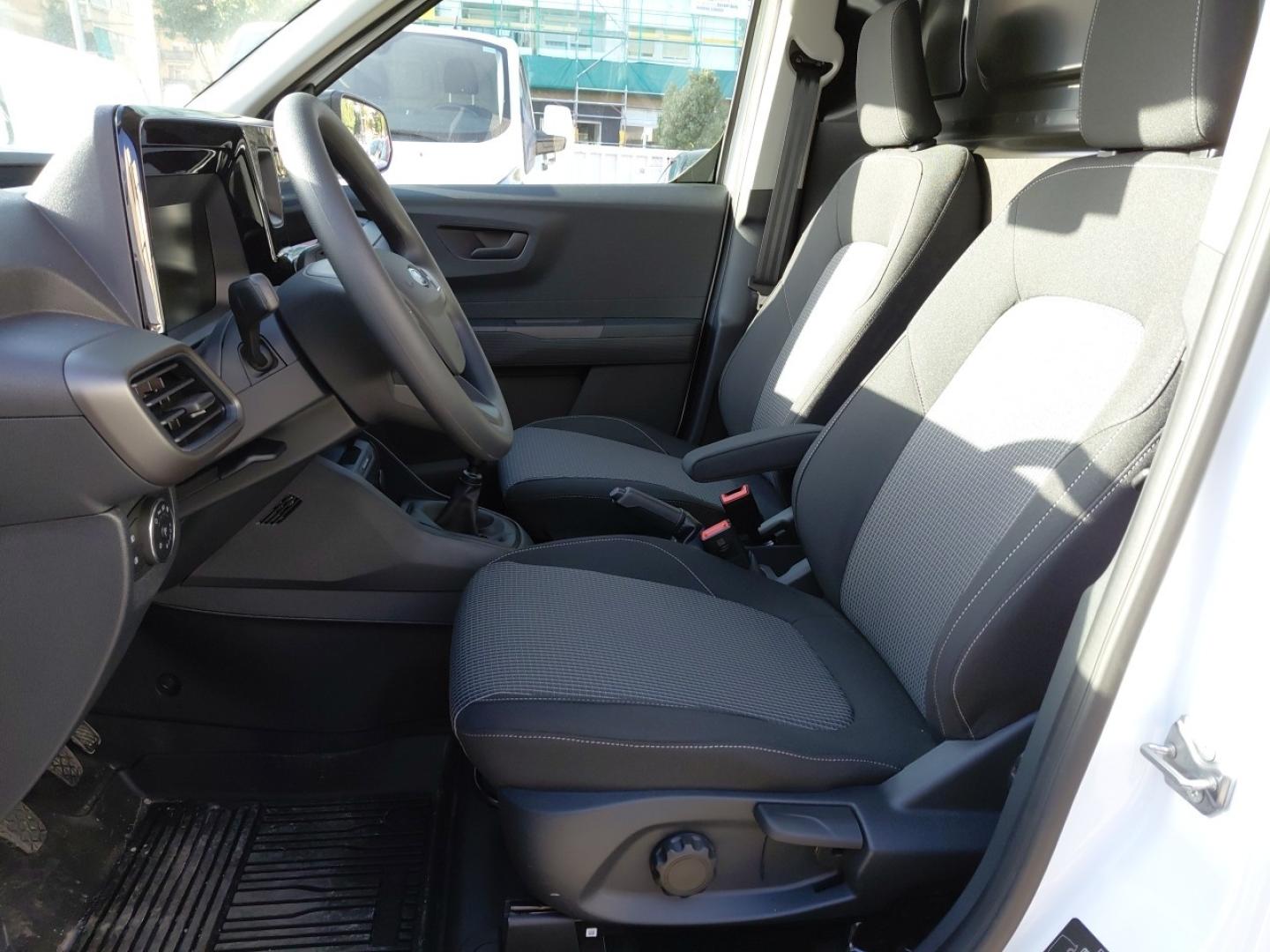 - Asiento delantero del conductor individual, ajuste longitudinal manual, ajuste manual en altura y ajuste lumbar manual con ajuste manual del respaldo, asiento delantero del acompañante individual y ajuste longitudinal manual con ajuste manual del respaldo